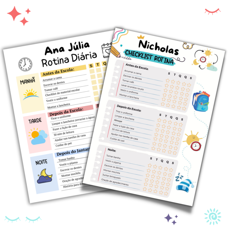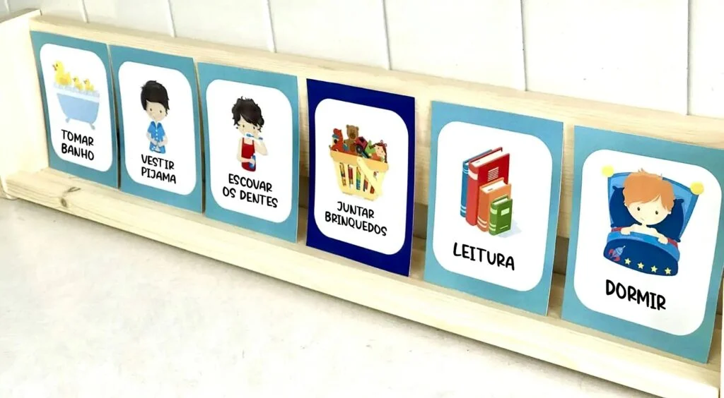 A Rotina com Card é uma ferramenta visual e dinâmica que ajuda os pais a criar uma rotina para os filhos, mesmo aqueles que ainda não sabem ler. Com cartas coloridas e ilustrações atrativas, ela transforma as tarefas diárias em atividades interativas e divertidas, proporcionando organização e diversão para toda as crianças.